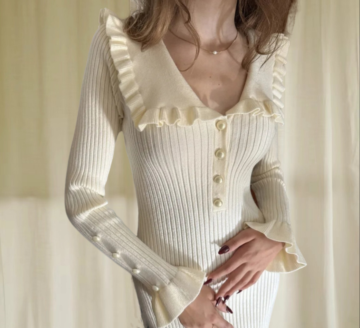 2024 Autumn/Winter New Commuting Ladies' Ruffle Knitted Dress