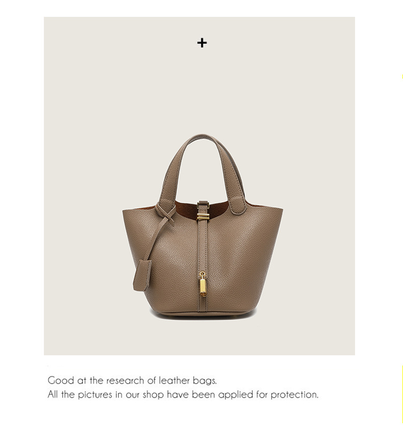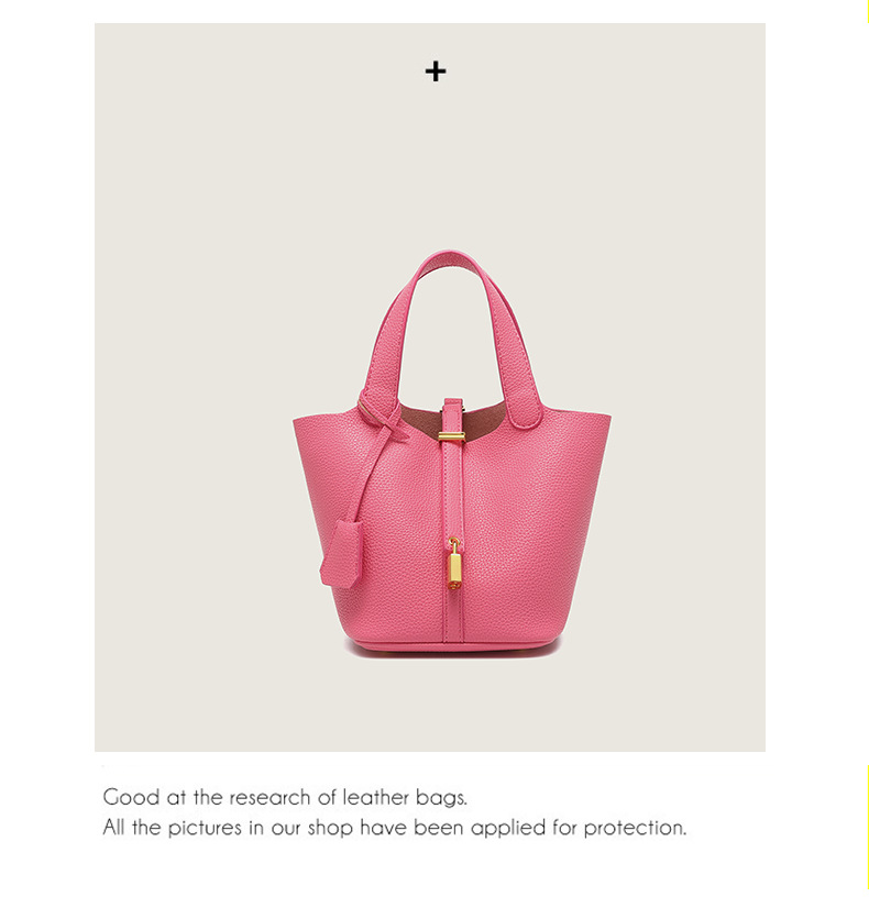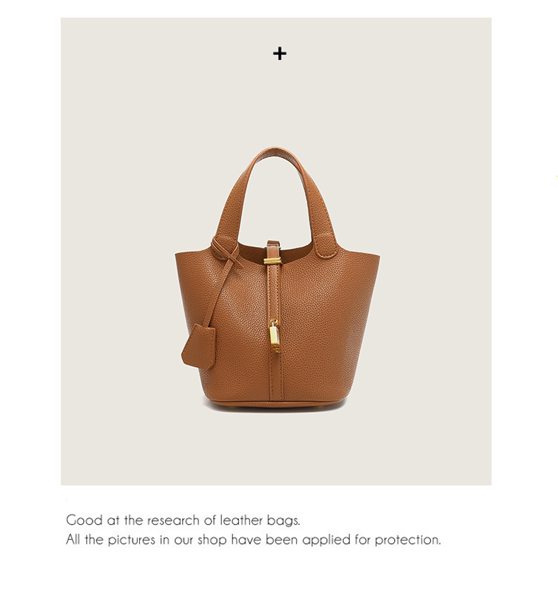 2024 New Vegetable Basket European And American Style Soft Leather Women's Large Capacity Lychee Pattern Bucket Bag Handbag