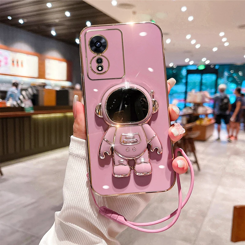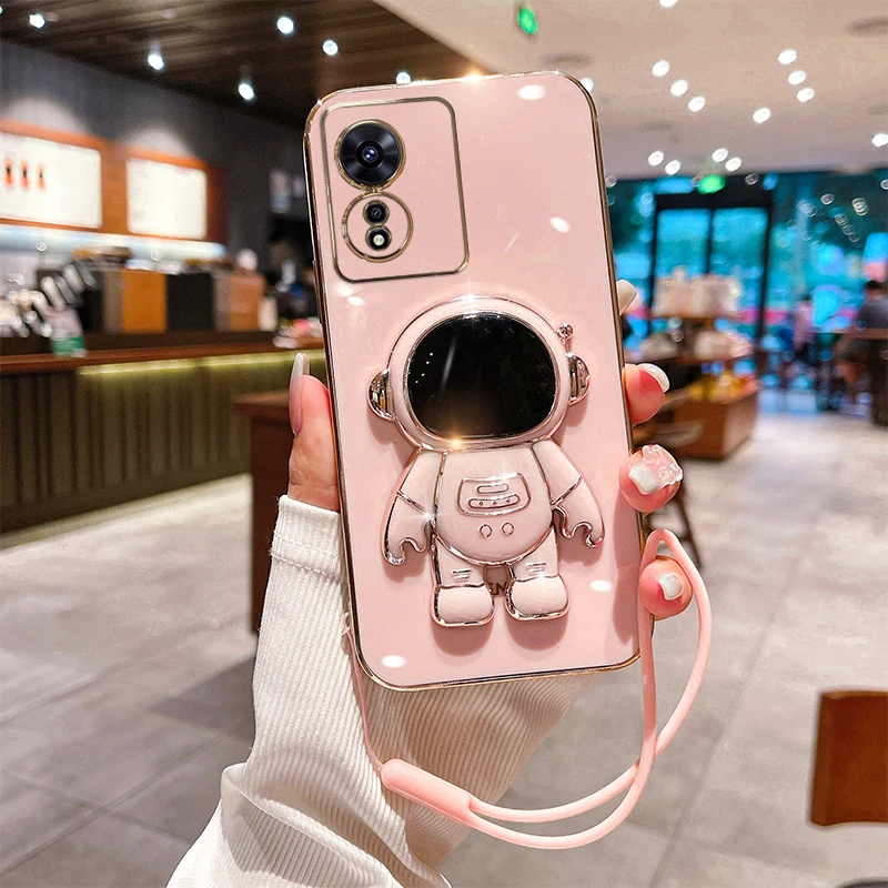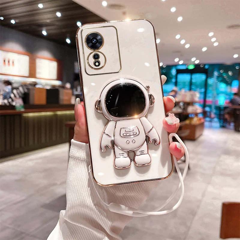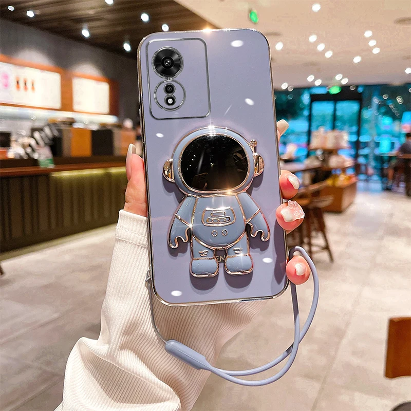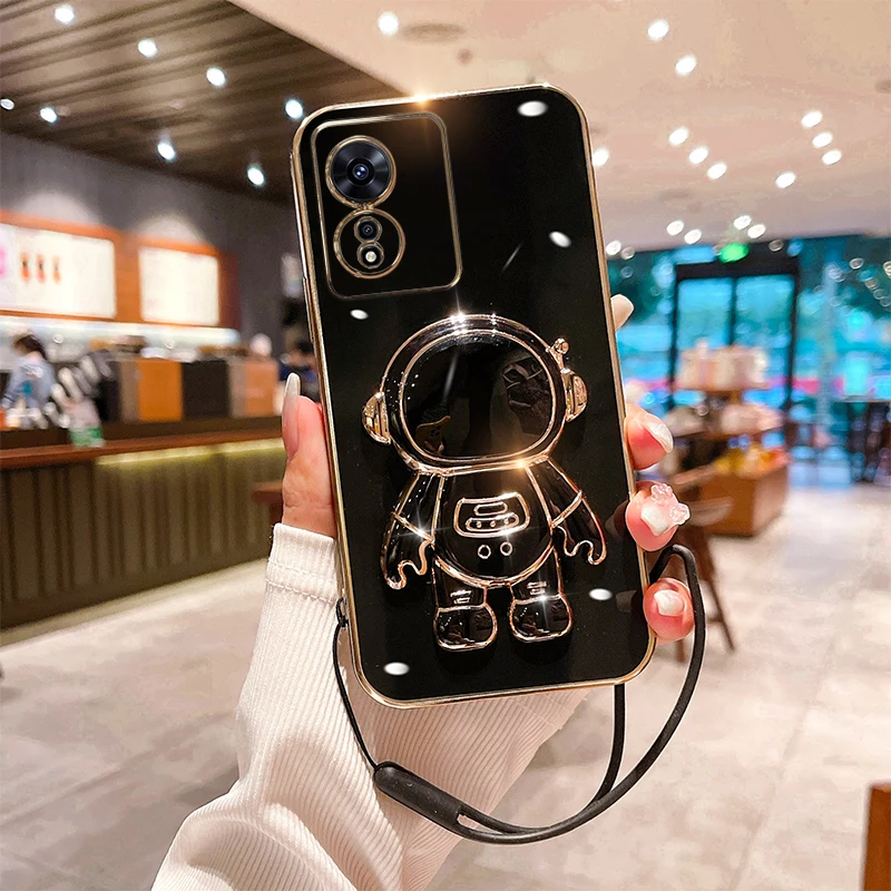 Astronaut Lanyard Case For OPPO A77S A57 5G A15S A53S A74 4G A78 5G A94 5G Reno 10 Pro 7 4G A73 A72 Plating Back Cover