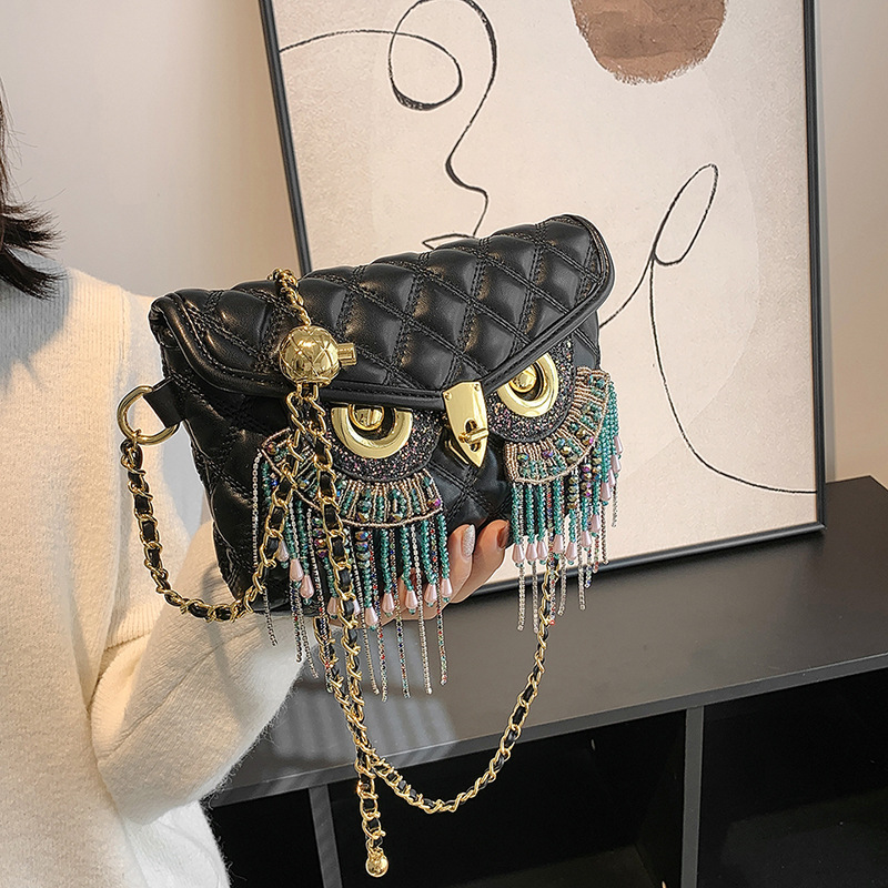 Autumn and Winter New Texture Heavy Industry Design Trendy Multi use Chain Tassel Owl Bag Women's One Shoulder Crossbody Bag