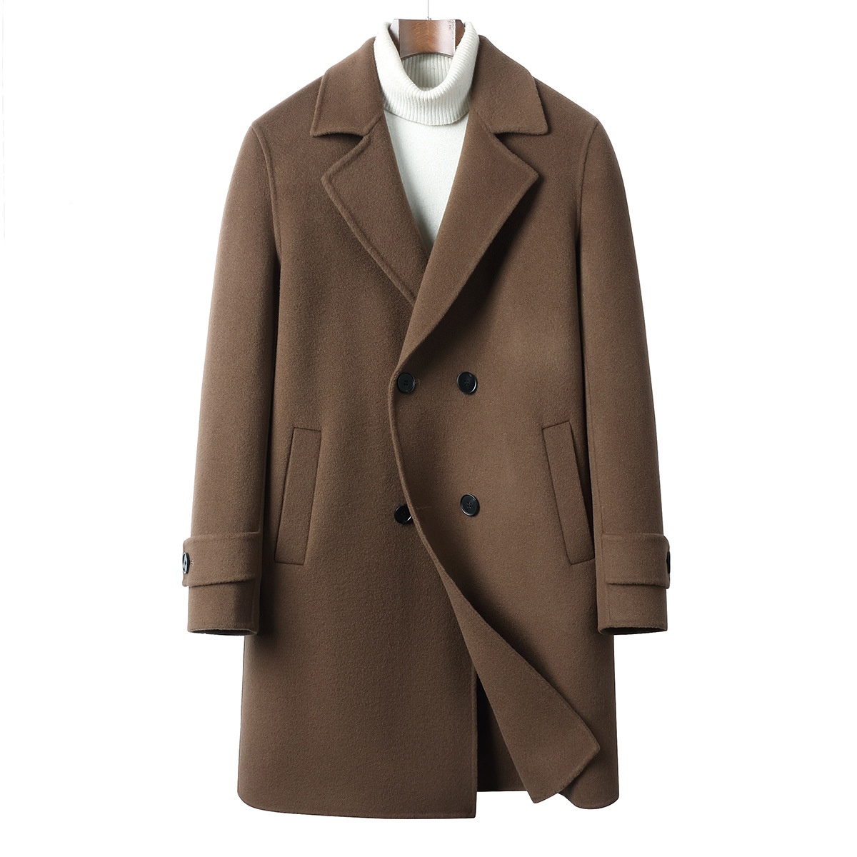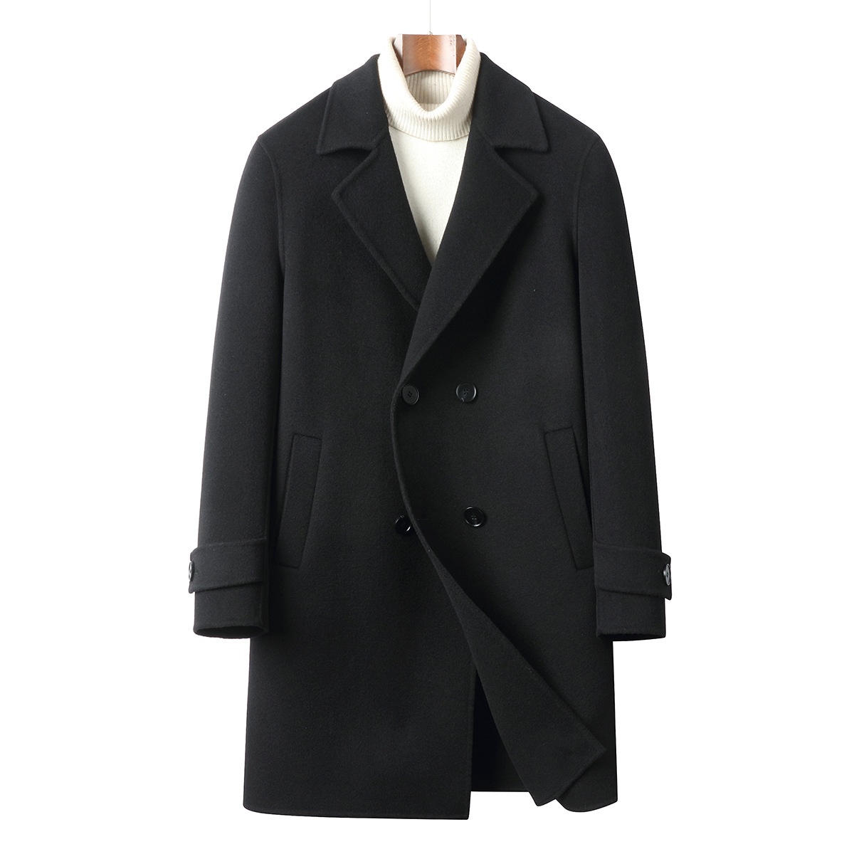 boy Boy 100% Autumn Winter Wool Men's Suit Collar Double Breasted Jacket Trench Woolen Mid-Length Coat