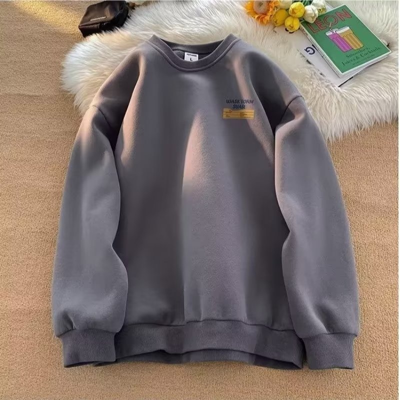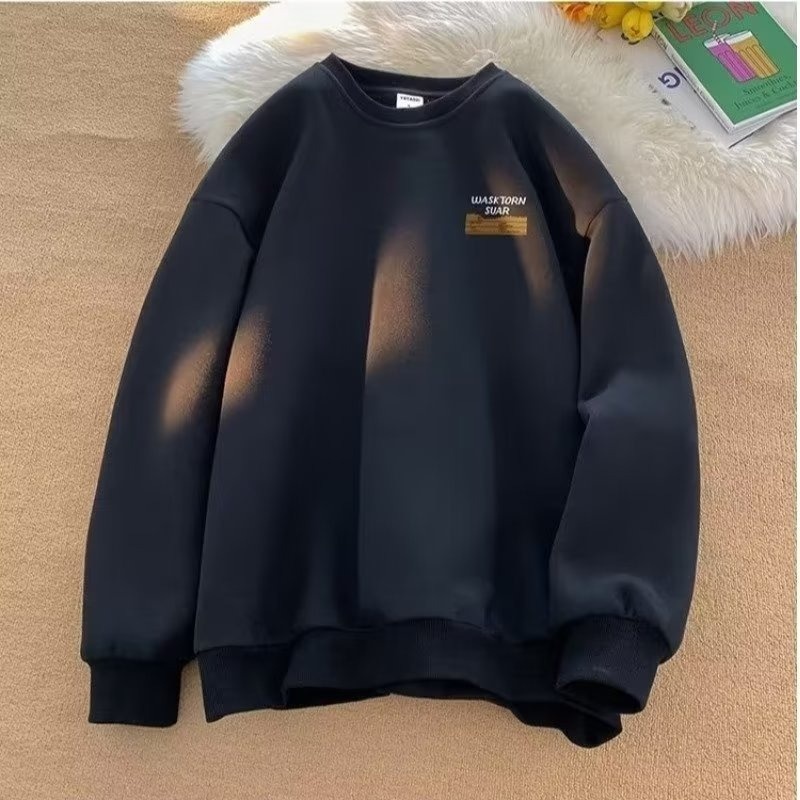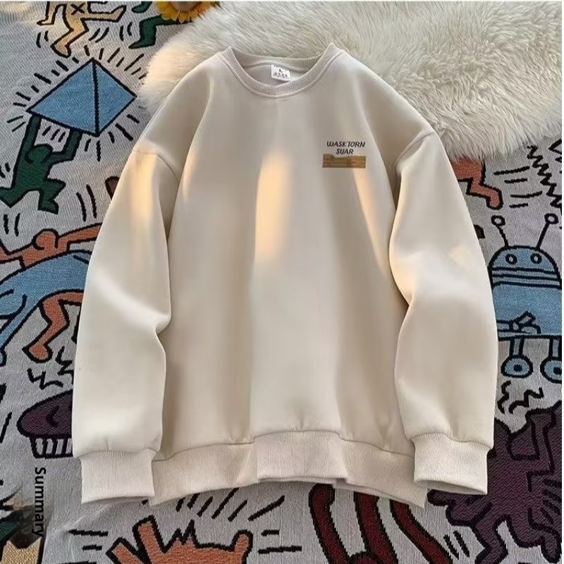 Product Source Category:In Stock,Brand:other/other,Item Number:J249,Year/Season of Release:Winter 2023,Is it a set or not?:No,Style:Trendy Youth Fashion,Bargain Category:Fashionable Urban 24-35 Years Old,Design 1:Pullover,With or without liner:No liner,Collar Style:Collarless,Neckline shape:Round Neck,Sleeve Length:Long Sleeve,Is it hooded or not?:Without a hood,Thickness:Fleece-lined,Error margin:1-3cm.,Suitable for the season:Winter,Is it in stock?:yes,Inventory Type:Complete order,Main fabric composition:Polyester Fiber Dacron,Content of the main fabric components:96% and above,Fabric Name:Polyester fiber,Applicable Scenarios:Casual,Pattern:Cartoon,Design details:other,Design:Loose Fit,Craftsmanship:Non-iron treatment,Color:Dark gray with fleece lining, light gray with fleece lining, white with fleece lining, black with fleece lining, apricot with fleece lining,Size:M,L,XL,2XL,3XL,4XL,5XL,Suitable for everyone:Youth,Sleeve Style:Regular,Pocket Design:Pocketless,Original Design Source:No,Is there a quality inspection report?:No,Gram weight:250g included - 300g not included,Suitable age group:adult,Applicable Gender:Male,Product Category:Fleece Sweatshirt