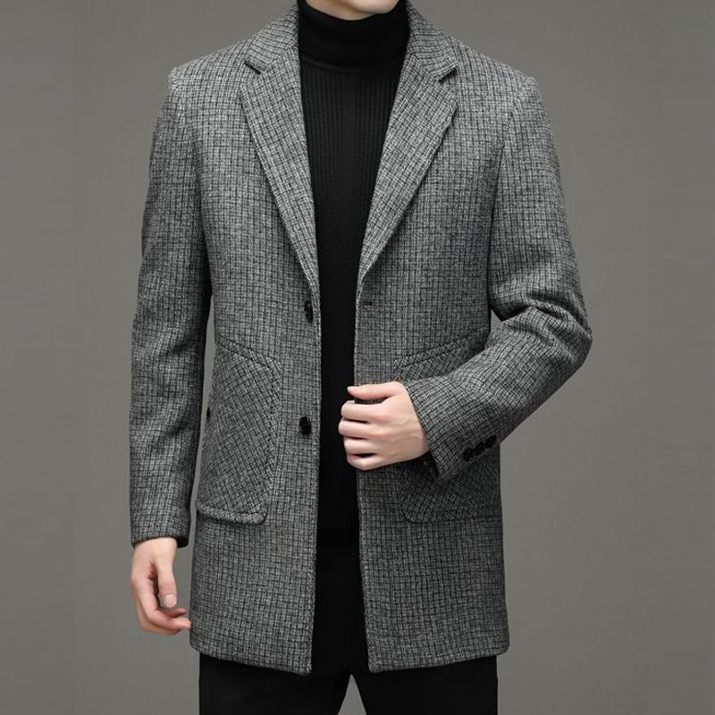 boy Boy Boy Autumn Winter Thickened Wool For Men, Dad's Warm Suit Collar Jacket, Fashionable Trendy Mid-Length Trench Coat