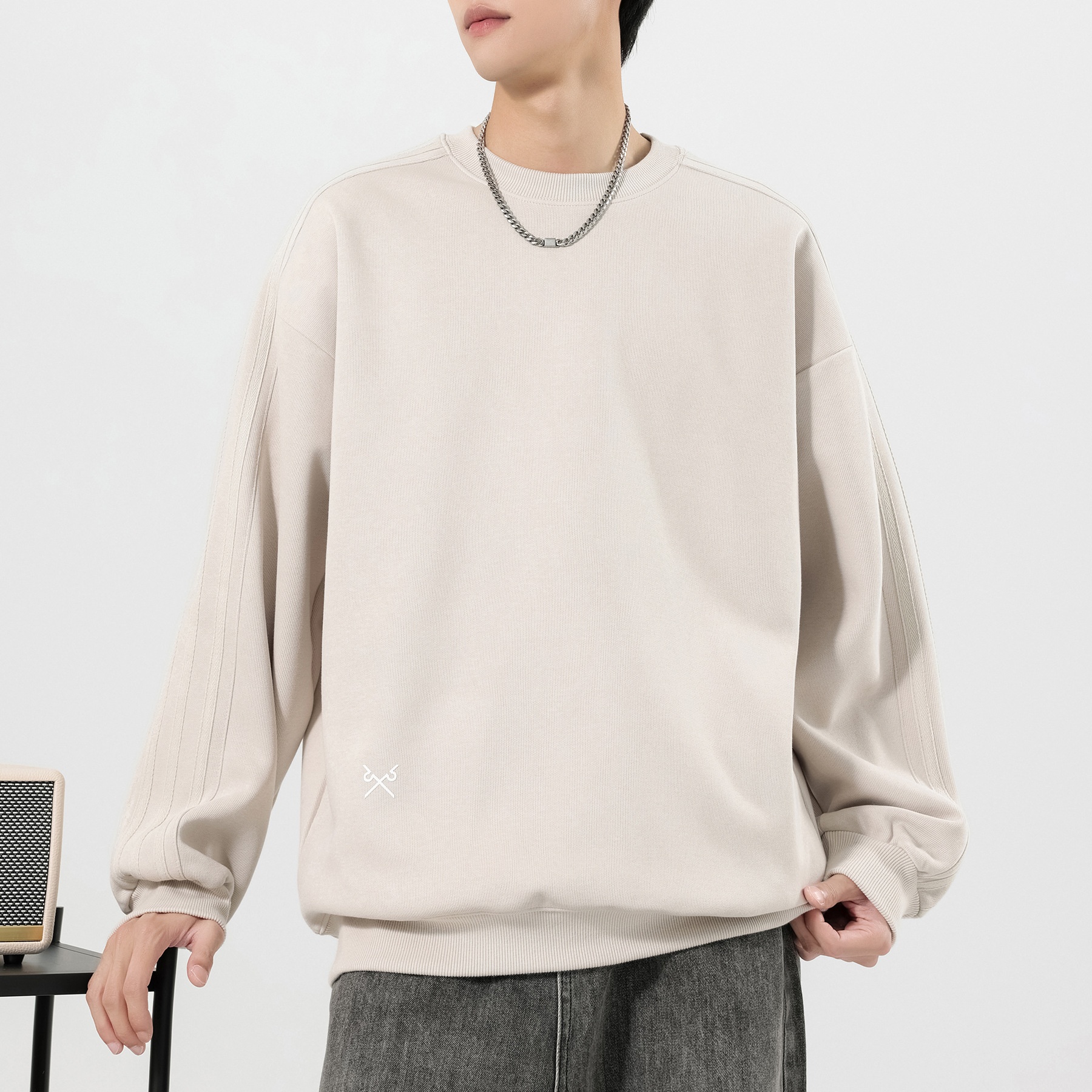 Product Source Category:In Stock,Brand:Kunhai Pengyun,Item Number:81359,Year/Season of Release:Autumn 2025,Is it a set or not?:No,Style:Basic Popular,Bargain Category:Fashionable Urban 24-35 Years Old,Design 1:Pullover,With or without liner:No liner,Collar Style:Collarless,Neckline shape:Round Neck,Sleeve Length:Long Sleeve,Is it hooded or not?:Without a hood,Thickness:Average,Error margin:1-3cm.,Suitable for the season:Autumn,Is it in stock?:yes,Inventory Type:Complete order,Main fabric composition:Cotton,Content of the main fabric components:65,Fabric Name:Textured Sweater Hoodie,Applicable Scenarios:Everyday,Pattern:Creativity,Design details:Printed,Design:Loose Fit,Craftsmanship:Non-iron treatment,Color:Black, white, apricot gray,Size:M,L,XL,2XL,3XL,Suitable for everyone:Youth,Main downstream platforms:, , , , Independent Station, , Others,Main sales regions:Africa, Europe, South America, Southeast Asia, North America, Northeast Asia, Middle East, Others,We have authorized private labels available:No,Is it exclusively for cross-border export supply?:yes,Sleeve Style:Drop Shoulder Sleeves,Original Design Source:No,Is there a quality inspection report?:No,Quality Inspection Report Number:ZT2505234083,Gram weight:320,Suitable age group:adult,What is the source type?:Factory Direct Sales First-hand Supply,Applicable Gender:Male,What type of agent?:Online Merchant Agent Offline Physical Store Dropshipping,Product Category:Fleece Sweatshirt,New Arrival Types:Fall and winter New arrival Fashion Men's Clothing