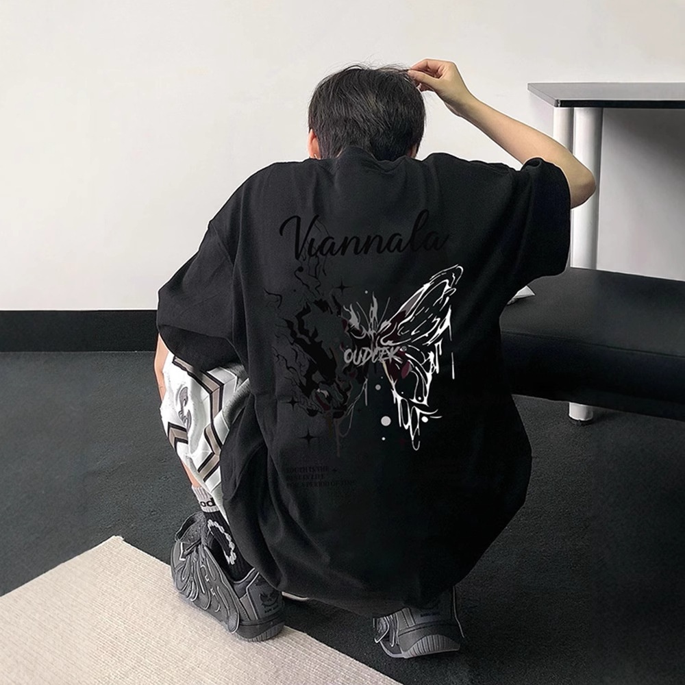 boy Boy Trendy Brand Cool Style T-Shirt For Men High-End Summer Cotton Butterfly Short American High Street Niche Five-Quarter
