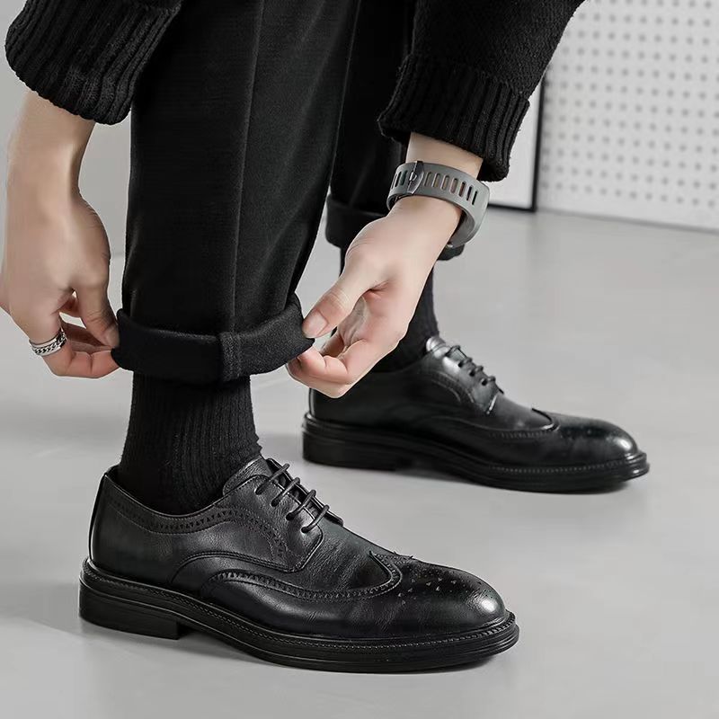 Brock shoes for men's formal attire, business high-end feel, leather inner increase, casual suit height