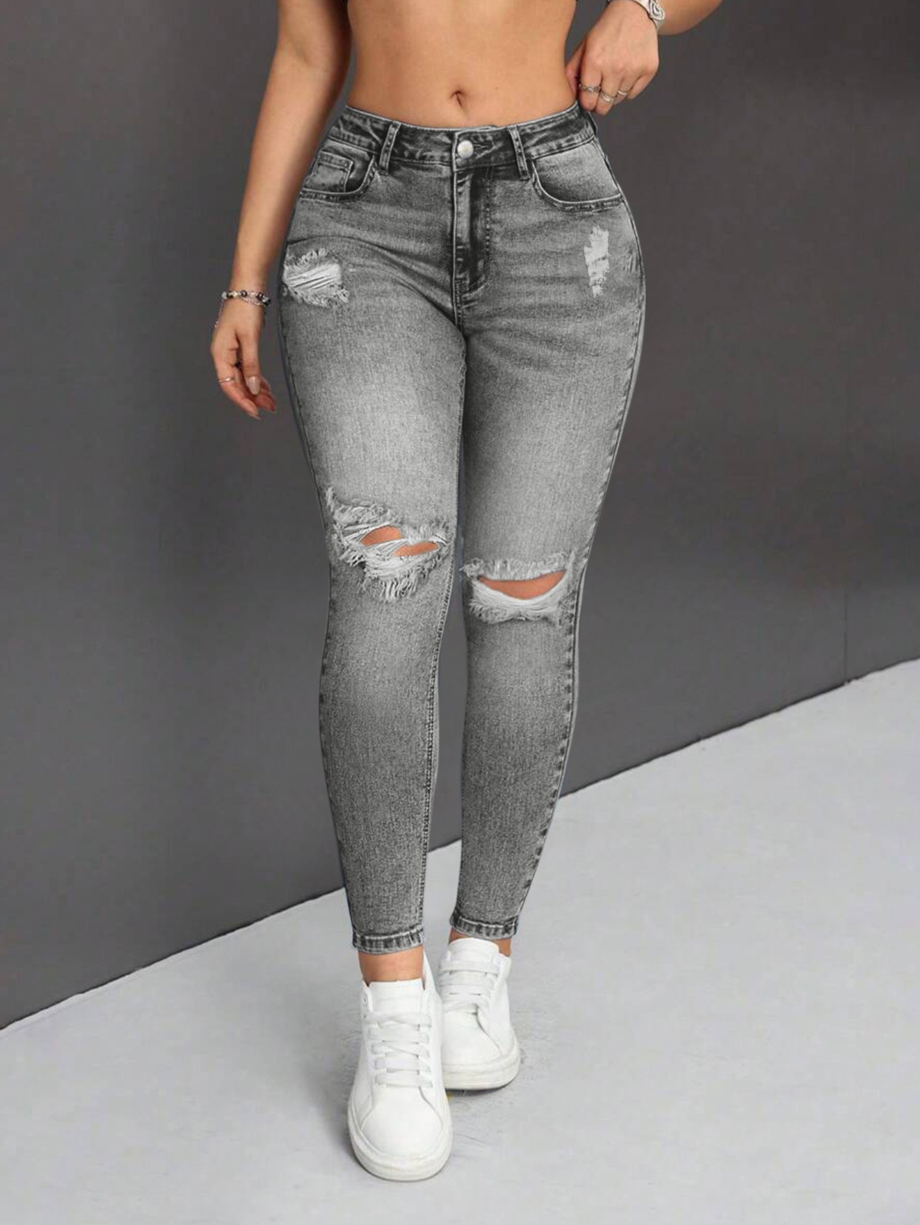ChicShe Cross-border Stretch Ripped Pants Slim Fit Versatile Elegant Tight Hip-lifting Slimming Women's Jeans