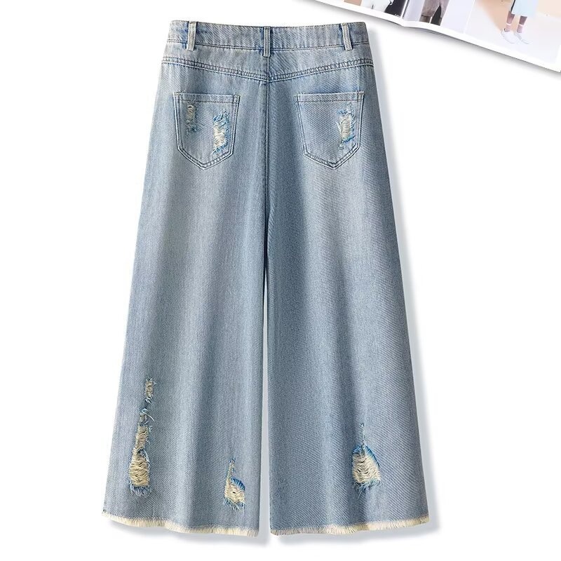 ChicShe Light Color Ripped Jeans Women 2024 New Summer Thin High Waist Loose Straight-leg Wide Leg Cropped Pants