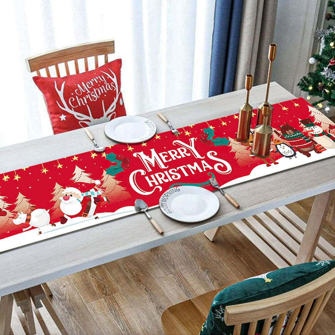 Joulupöytäjalkakoristelu kodin keittiön pellava pöytäliina Joulupöytäliina