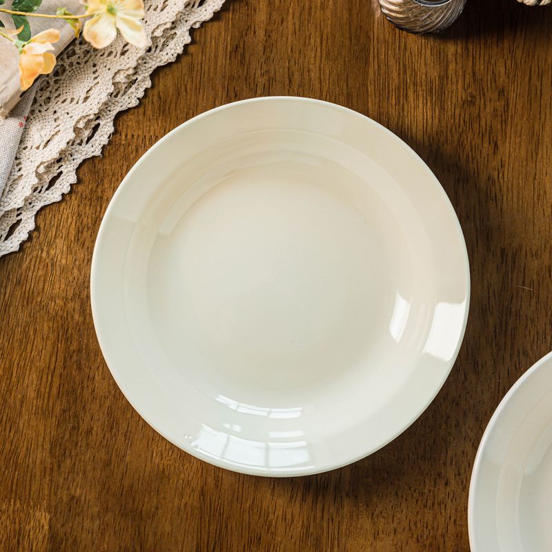 Cream-colored Ceramic Deep Round Dinner Plate Solid-color Dinner Plate For Home Use