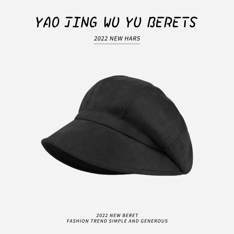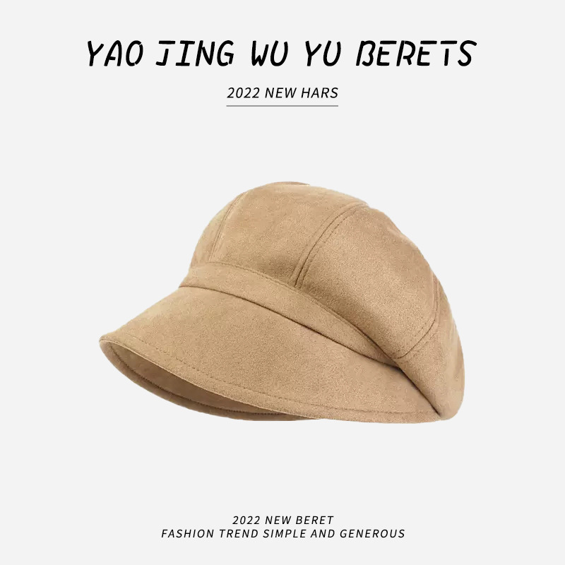 Hats for women in autumn and winter, artistic simplicity and versatility, suede velvet net red cold hat, small face, octagonal hat, Korean fisherman hat