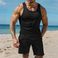 Men's Clothing Waffle Texture Short Sleeve Vest Shorts Set Breathable Running, Casual Wear (Black, Wine Red, Dark Green, Khaki, Gray, White)
