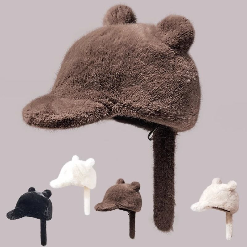 High quality men's and women's versatile and cute little bear ear plush baseball cap, Korean version with plush and thick duck tongue hat
