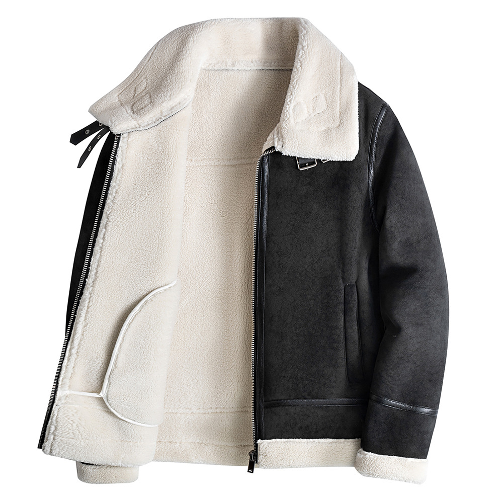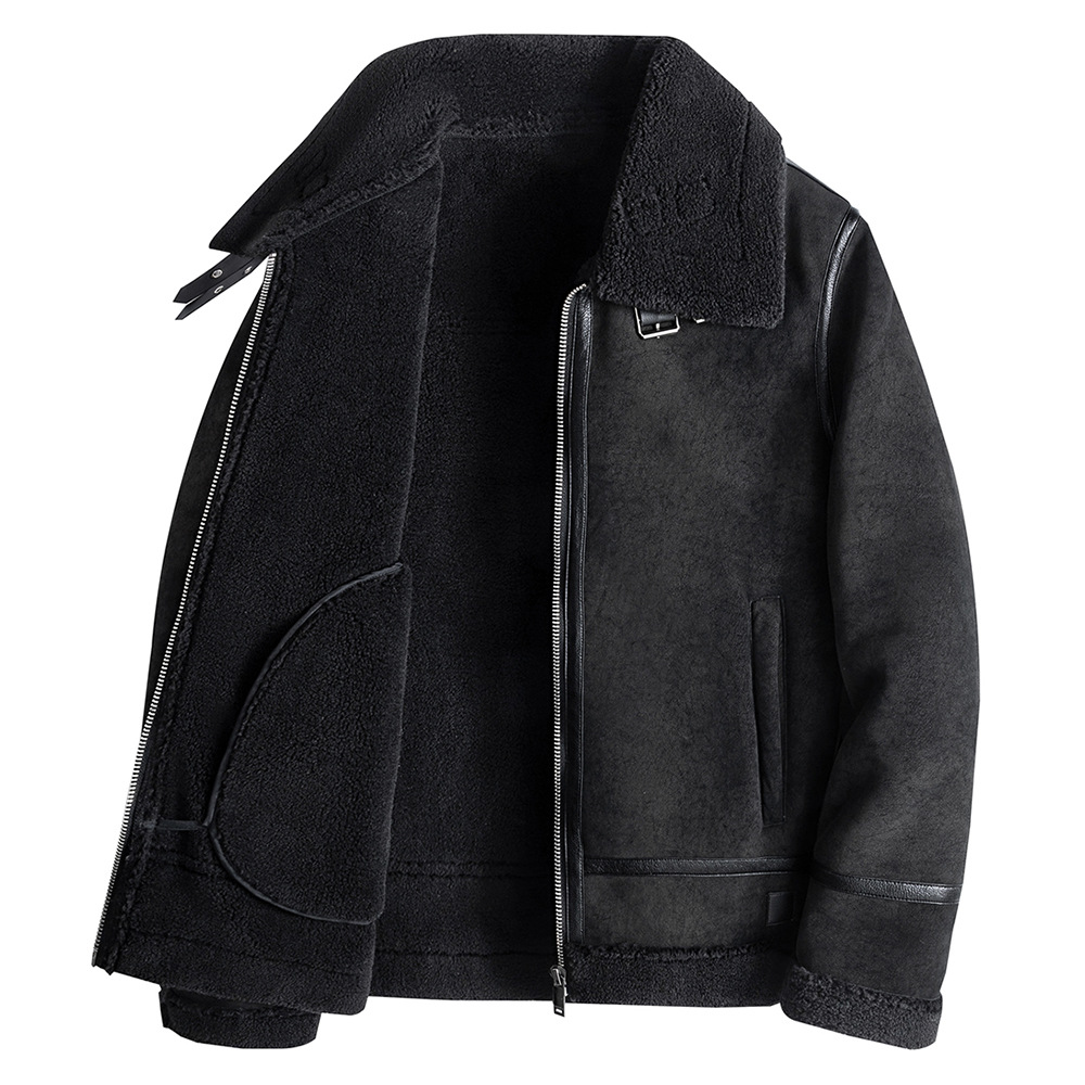 Hunting outfit fur integrated men's short motorcycle lapel flight suit handsome PU leather jacket leather jacket jacket trendy jacket