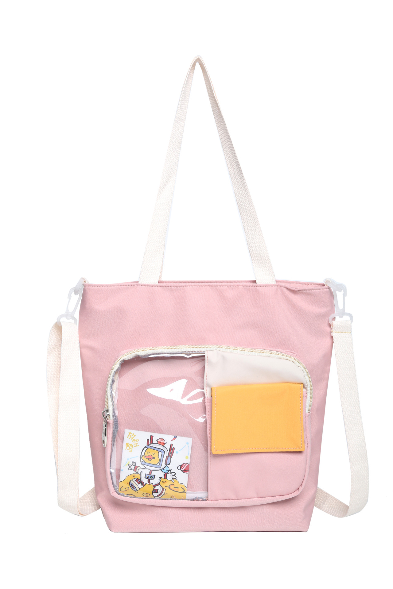 Korean style campus style shoulder bag, literary and versatile, casual student crossbody bag, cartoon cute transparent shoulder bag