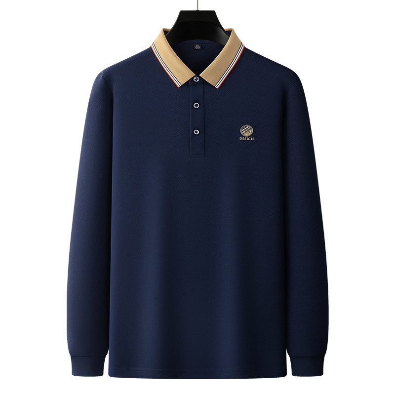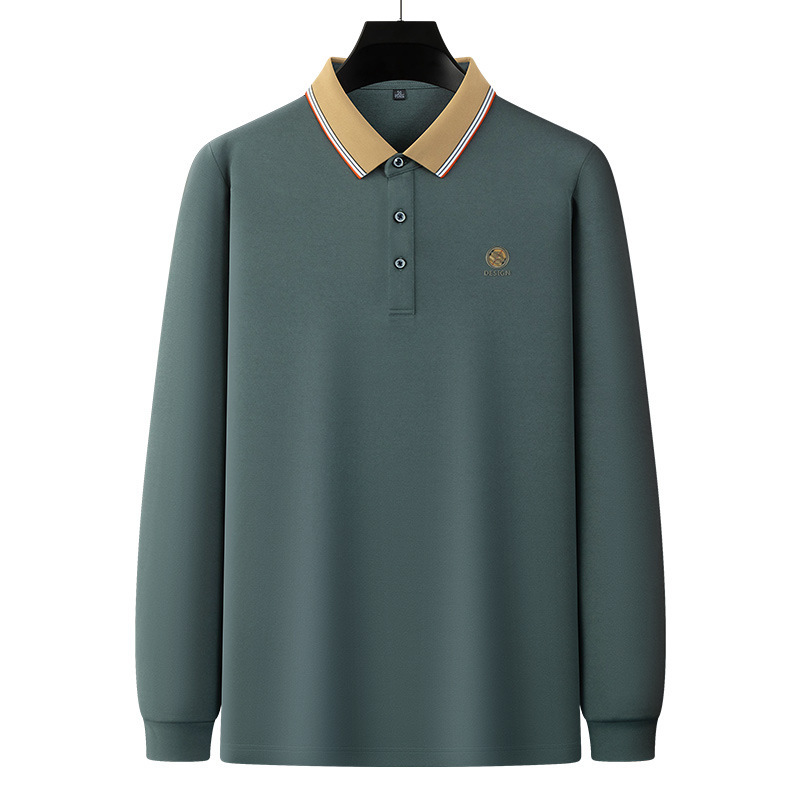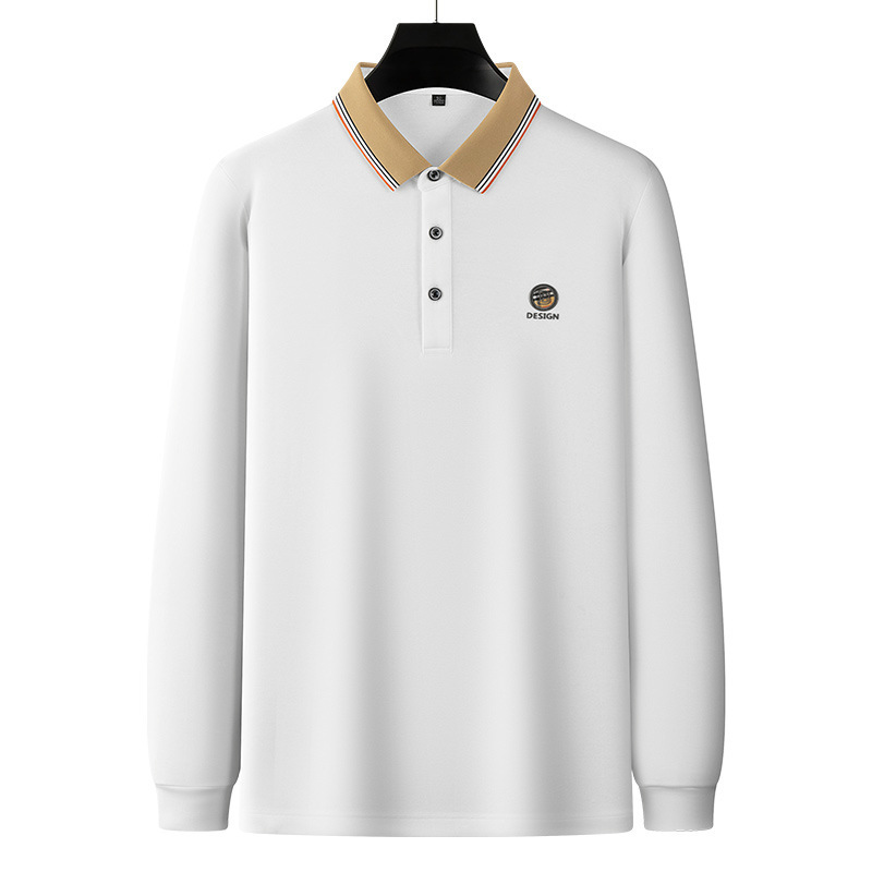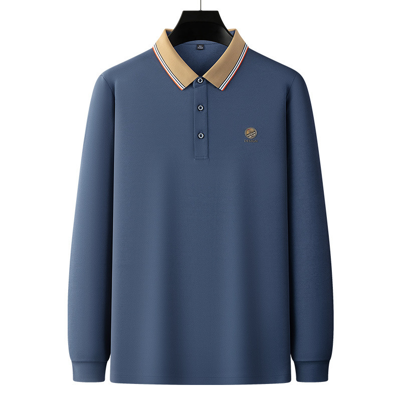Legendary Paul Men's Fall New Mulberry Silk Fabric Flip Collar Long Sleeve Embroidered POLO Shirt Casual Business Polo