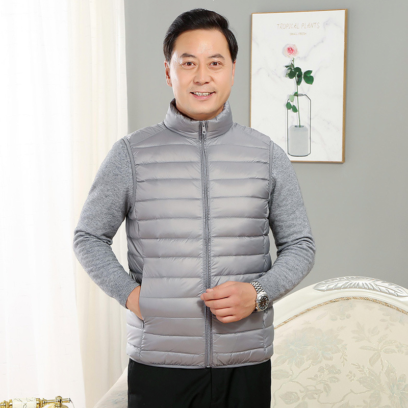 Middle-aged and elderly new winter down jacket men's vest stand collar waistcoat light white down vest men's top clothes