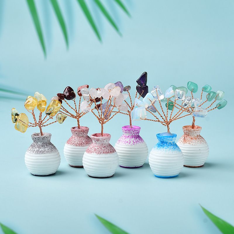 Mini Small Vase Crystal Cross-Border Desktop Ornament Handmade Amethyst Tree