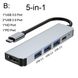 (B) 5-in-1 1*USB3.0 + 2*USB2.0 + 1*USB-C PD + 1*HDMI-compatible4k