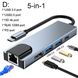 (D) 5-in-1 1*USB3.0 + 1*USB2.0 + 1*USB-C PD + 1*HDMI-compatible4k+ 1*Rj45 100M