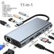 (G) 11-in-1 1*USB3.0 + 3*USB2.0 + 1*TF + 1*SD + 1*HDMI-compatible4k + 1*Rj45 100M + 1*USB-C PD port + 1* VGA2k + 1*3.5mm jack