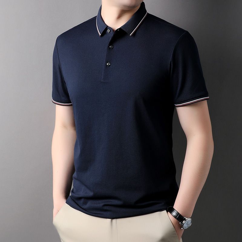 Mulberry silk short sleeved T-shirt polo shirt for men's summer thin middle-aged business loose casual dad summer top