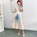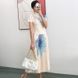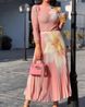 Naisten vaatteet, temperamenttinen, korkeakauluksinen, lyhythihainen t-paita, joustava printti, laskeutumispiste, keskipitkä, laskostettu hame, laskostettu muotityylinen kaksiosainen puku