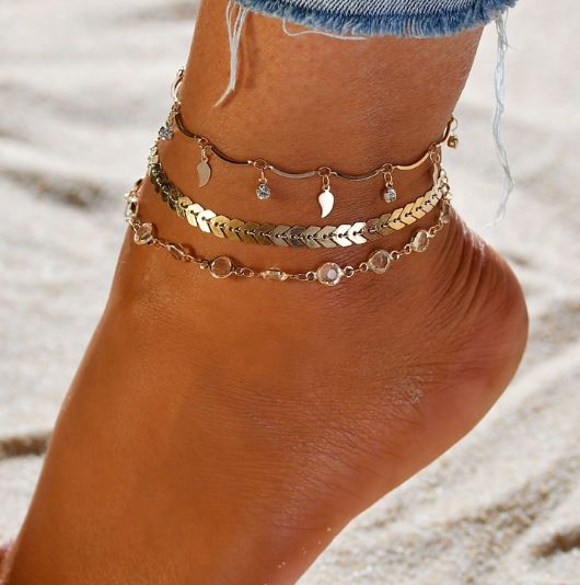Pop creative round chain, versatile in summer, fashionable arrow inlaid diamond three piece set ankle chain