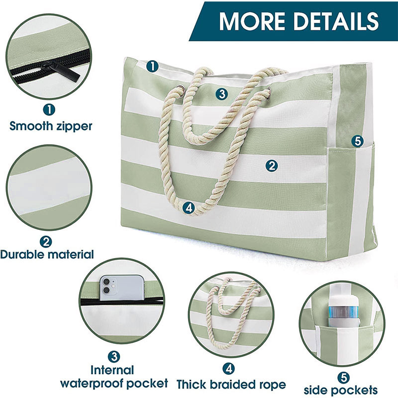 Ulkona käytettävä raidallinen suuri säilytyskassi, muodikas puuvillainen kädessä pidettävä rantakassi, suuren kapasiteetin matkakassi, ostoskassi