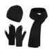 Huivi kolmiosainen lämpöpuku syksyllä ja talvella paksunnettu yksivärinen neulottu villahattu käsineet_voghion.com
