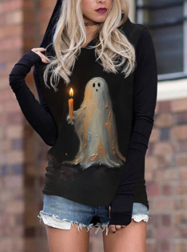 Skull Print Hooded Sweatshirt Women's Top Jacket Casual European Size Plus Size