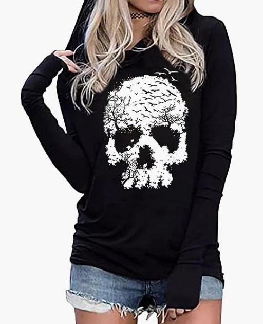 Skull Print Hooded Sweatshirt Women's Top Jacket Casual European Plus Size