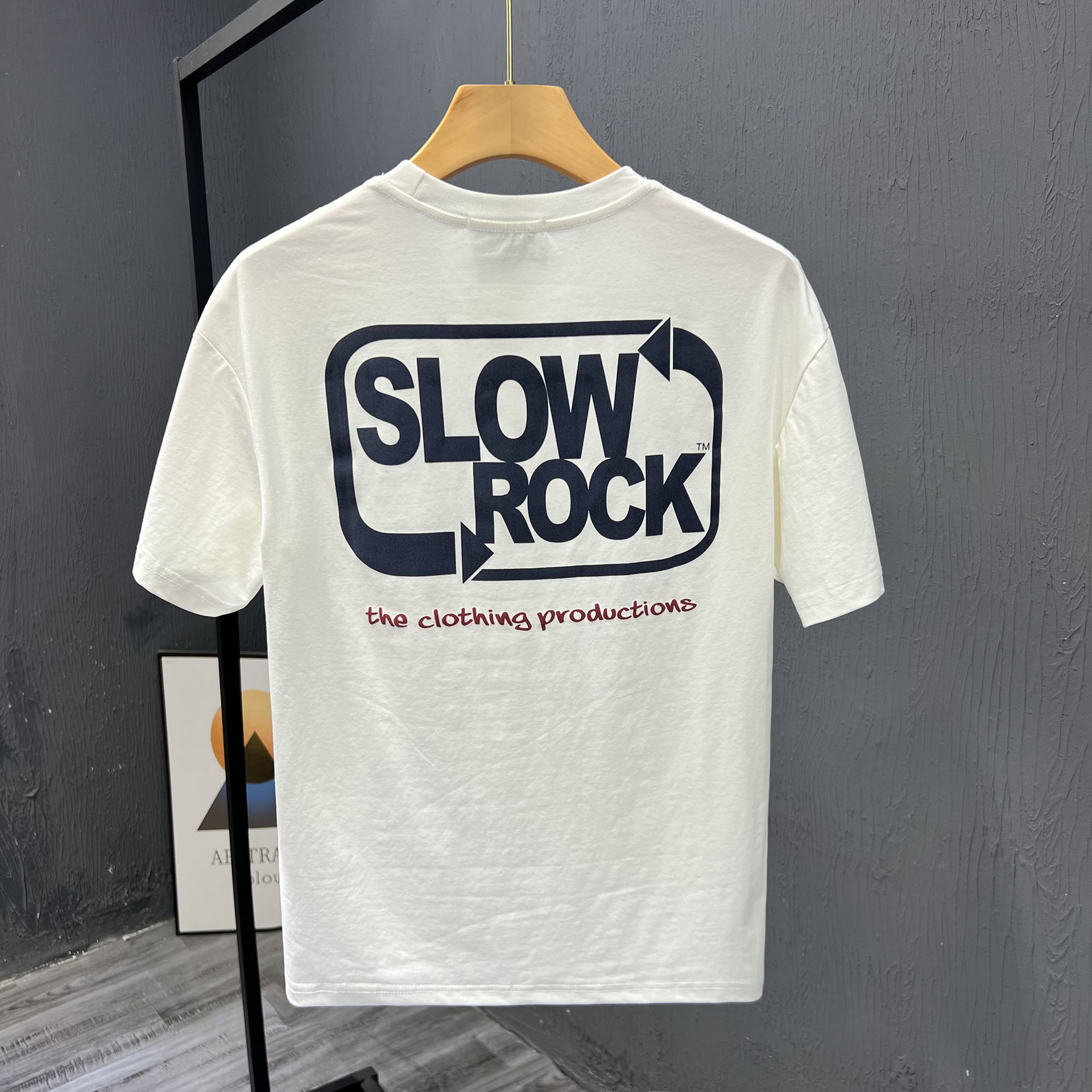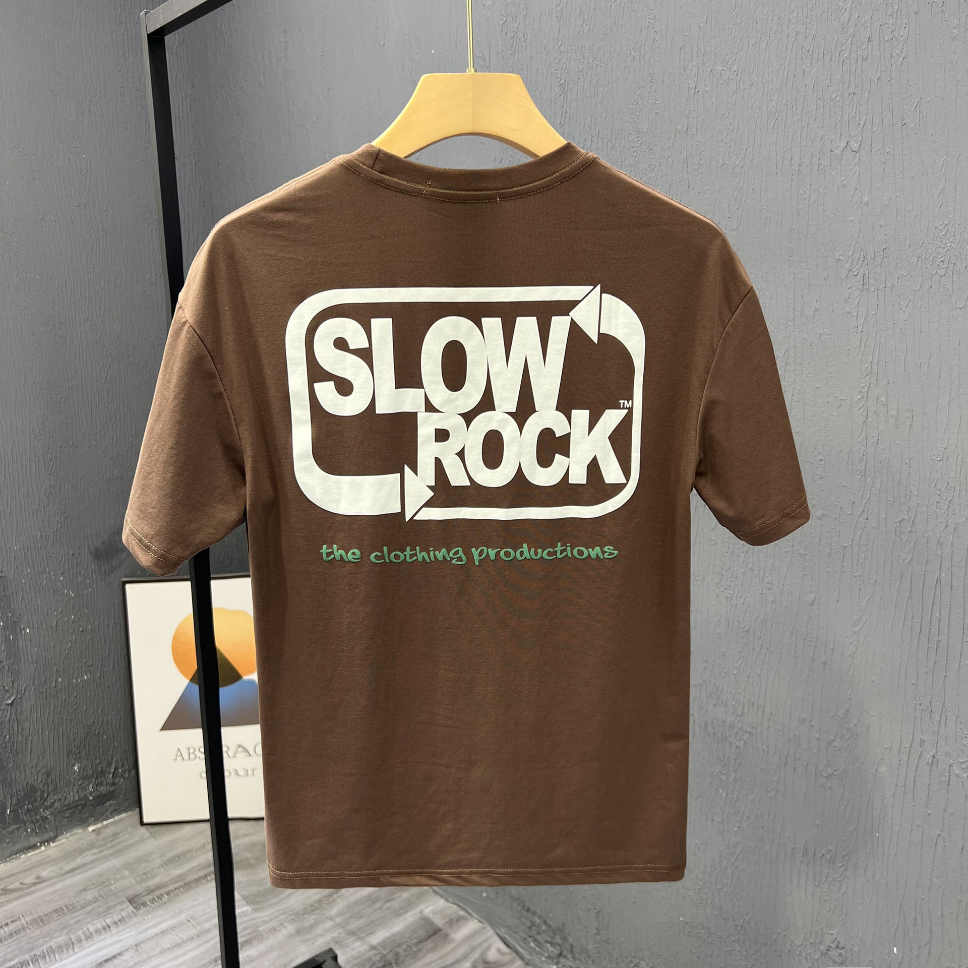 Summer pure cotton short sleeved T-shirt for men's 2023 new letter print versatile casual half sleeved round neck T-shirt