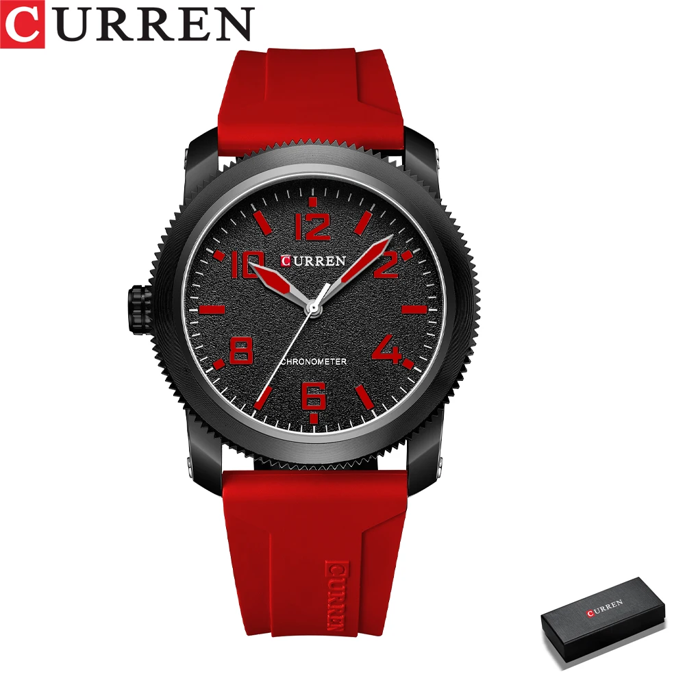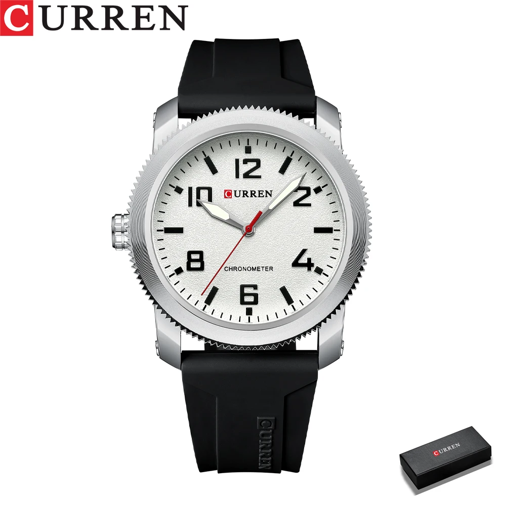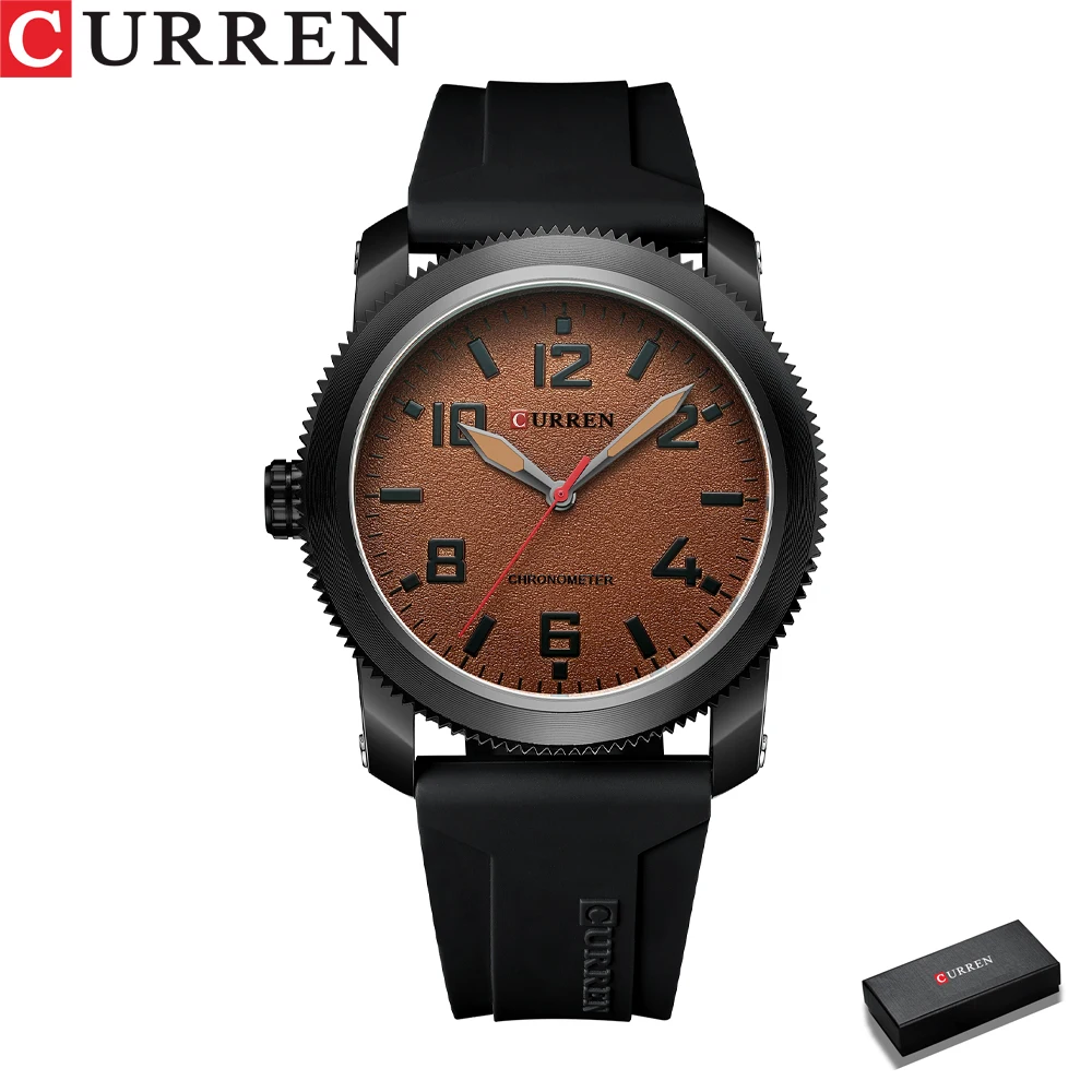 Case Thickness:15mmBand Width:26mmBand Material Type:SiliconeCase Shape:RoundDial Window Material Type:HardlexBoxes & Cases Material:LeatherModel Number:8454Dial Diameter:46mmFeature:Water ResistantWater Resistance Depth:3BarClasp Type:BuckleBand Length:25cmCase Material:Stainless SteelMovement:QuartzStyle:Fashion & CasualBrand Name:CurrenOrigin:Mainland ChinaItem Type:Quartz Wristwatches