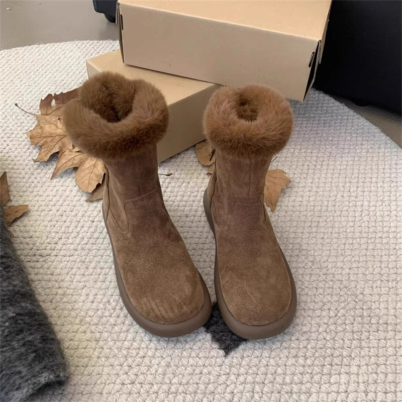 Winter cotton boots thick soled snow boots for women 2024 winter new style with plush insulation, fashionable and versatile flat bottom short boots