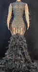 Naisten vaatteet seksikäs verkkomainen kuuma timanttiperspektiivi yksiosainen höyhenpitkä mekko iltapuku näyttämösuorituspuku YM