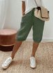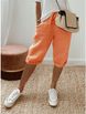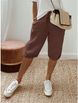 Women's cotton and linen pocket elastic casual pants women's pants quarter pants