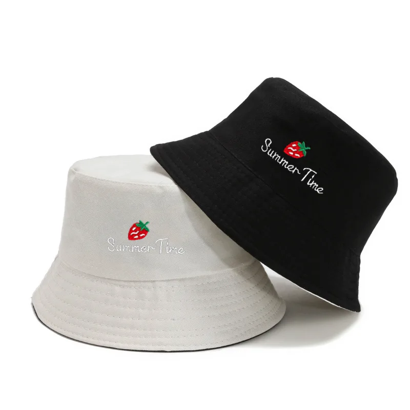 1. Item: Women's Double-sided Embroidered Smiley Fisherman Hat Wholesale Double Sided with Basin Cap Seasonal Sun Hat Bucket Hat
