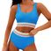 naisten korkea vyötäröinen bikinit jaettu puku nauha isokokoinen uimapuku yksiväriset tikkaukset